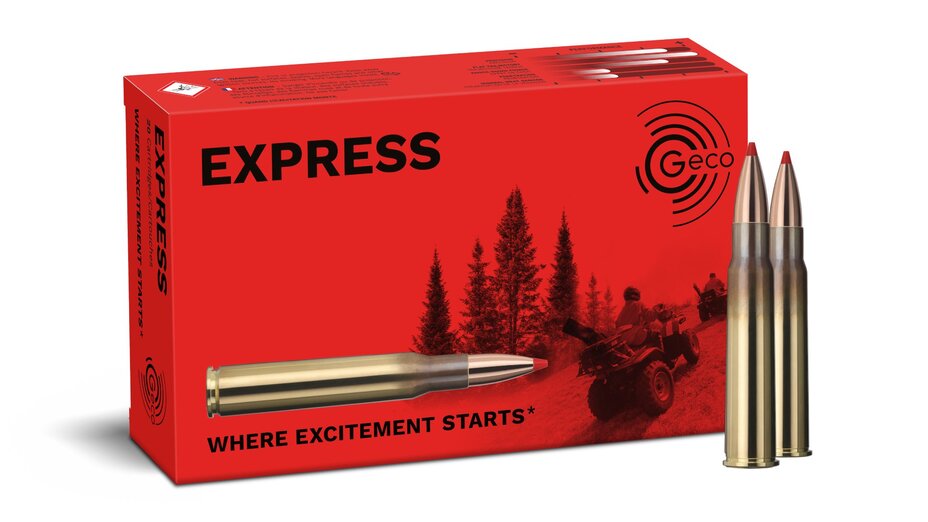Das GECO Express steht für eine gestreckte Flugbahn, hohe Geschossgeschwindigkeit und extreme Augenblickswirkung – vereint in einer neuartigen GECO Entwicklung. Die auffällig stromlinienförmige Geschossform wird von der GECO Express Tip abgeschlossen. Eine Geschossspitze, welche weite, präzise Schüsse ohne Haltepunktkorrektur ermöglicht. Die hohe Geschossgeschwindigkeit wird bis ins Ziel gehalten und auf Grund der auf Distanz konzipierten Mantelkonstruktion in Energie umgesetzt. Energie, welche die Stücke an den Boden bringt.